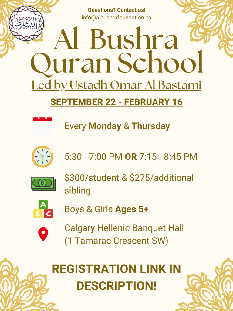 Alhamdulillah! We’re excited to announce the launch of Al-Bushra Islamic Foundation and our very first Quran Program, led by Ustadh Omar Al Bastami!